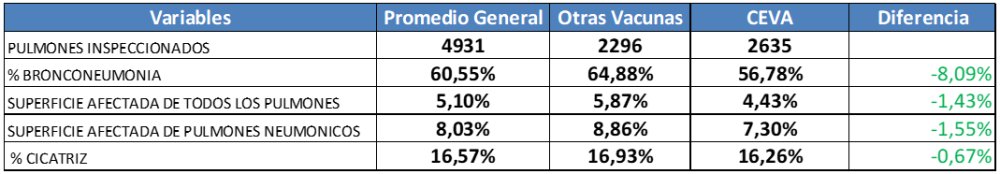 Hyogen también ha demostrado tener los mejores resultados en el grado de lesiones pulmonares en frigorífico. En el periodo de 2018 en Argentina se inspeccionaron 4.931 pulmones y Hyogen demostró ser superior en cada uno de los parámetros evaluados.