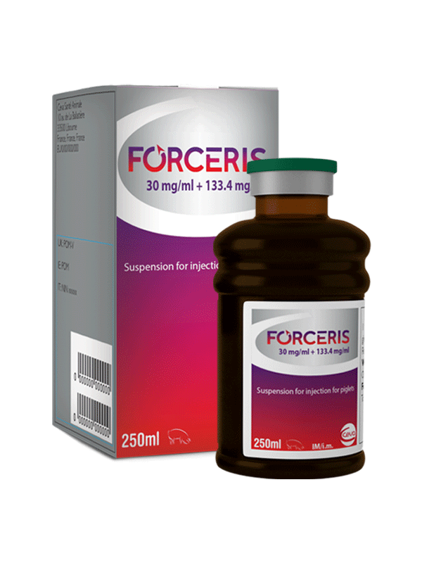 ForcerisTM está indicado para la prevención de la anemia por deficiencia de hierro (ferropénica) porcina, así como para la prevención de los signos clínicos asociados a la coccidiosis porcina (diarrea), así como para la reducción de la excreción de ooquistes del parásito.