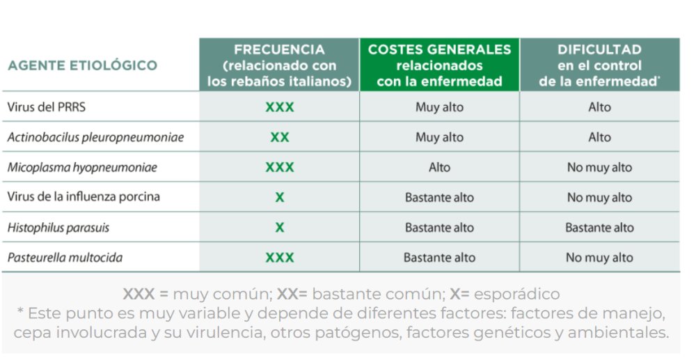 La enfermedad respiratoria en las granjas italianas es un problema generalizado. La gravedad del problema varía entre rebaños, de hecho, en el estudio realizado, todos los rebaños estaban afectados por problemas respiratorios, pero en el 62% de ellos la enfermedad respiratoria fue reportada como un problema constante que afectaba a cada lote de cerdos, mientras que en el resto de los rebaños se consideraba que dicha enfermedad se presentaba de forma esporádica.