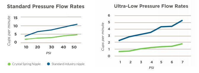 El resultado fueron los bebederos para comederos seco/húmedo Adaptive-Flow™, el primer y único bebedero desarrollado específicamente para su uso en comederos seco/húmedo. Con un inserto de silicona patentado, estos innovadores bebederos adaptan el flujo de agua en los comederos incluso con variaciones en la presión del agua en los galpones,, para proporcionar un flujo de agua preciso y constante a los animales.