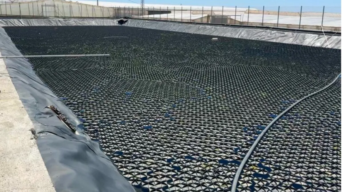 es fácil de instalar: Al verter las piezas hexagonales desde los big-bags a la balsa, ellas mismas se ajustan automáticamente, cubriendo hasta el 99% de la superficie del agua. No tiene coste de reparación, ni coste de funcionamiento. Además, se puede combinar con placas solares flotantes para cubrir la balsa entera.Otra ventaja de Hexa-Cover