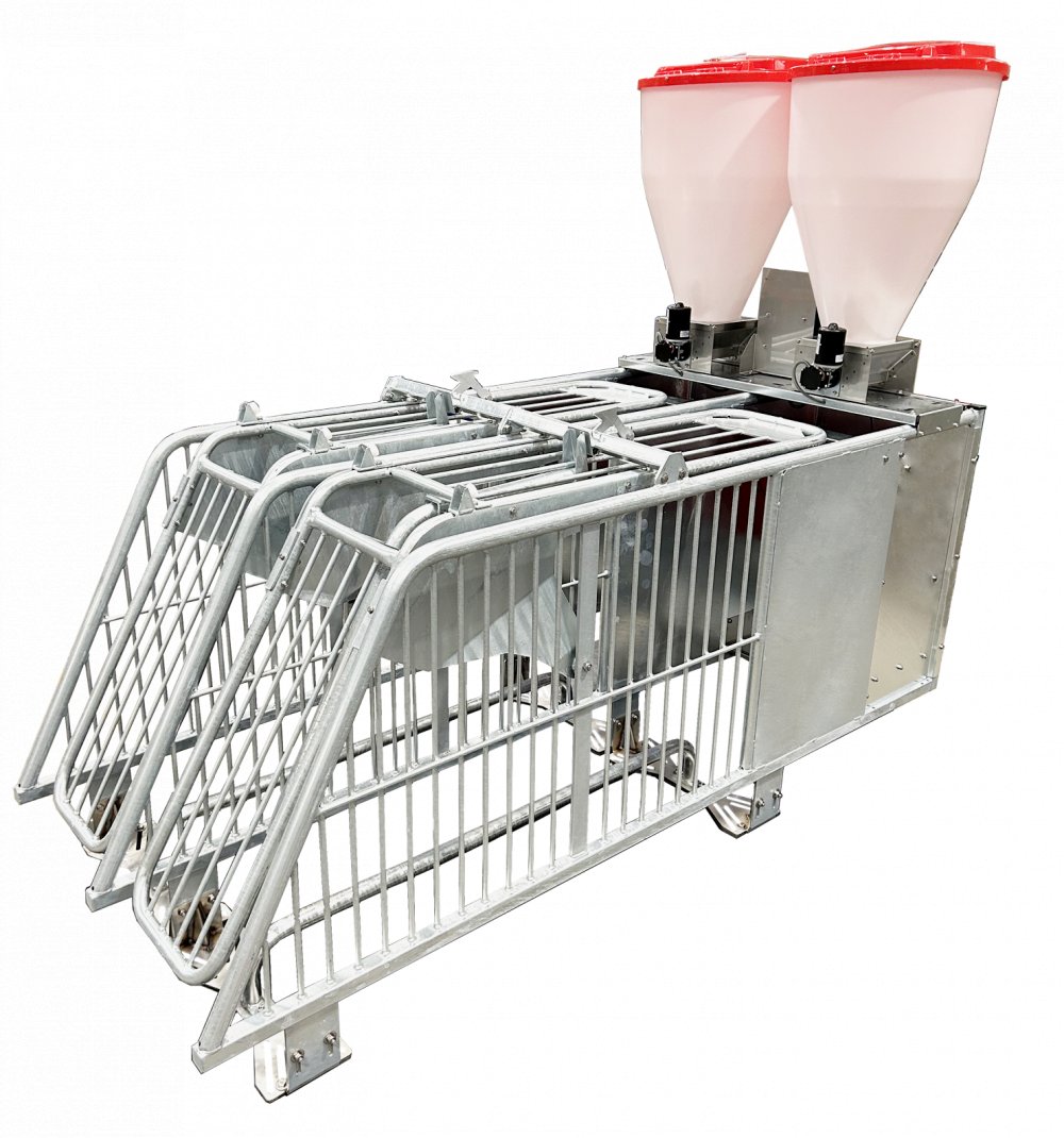 Este box autoblocante permite suministrar la cantidad exacta de alimento a cada animal, basándose en curvas de alimentación personalizadas y gestionado a través de diversas plataformas como PC, tablet o smartphone, incluyendo un sistema de alarmas.