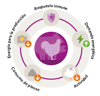 Los animales de alto rendimiento como las cerdas, las gallinas ponedoras y las vacas lecheras, entre otros, deben hacer frente a muchos factores de estrés, que pueden conducir a la inflamación crónica, reduciendo la productividad y aumentando la huella ambiental. La inflamación es parte del mecanismo de defensa natural del animal. Si bien es una función crucial para todos los organismos, el nivel de inflamación (ya sea aguda o crónica) y su causa raíz pueden tener un impacto negativo significativo en el rendimiento animal. Como consecuencia se observa una pobre ingesta de pienso y un menor rendimiento (crecimiento, huevo o leche), lo que finalmente conduce a una disminución de la productividad y un aumento de la huella de carbono. Un aspecto clave para los productores es asegurarse de que sus animales no desarrollen síndrome de inflamación crónica para mantener una buena salud y maximizar el rendimiento y la eficiencia energética de los animales.