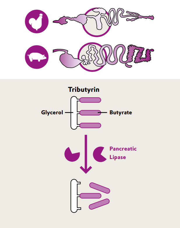 - Butyrate supports epithelial cell integrity and growth as well as mucin production Contributes to a sustainable and AGP-free animal production
