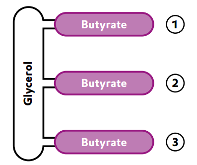 - Easy handling: Excellent flowability, stability during storage & no unpleasant smell Min 60.0% tributyrin content