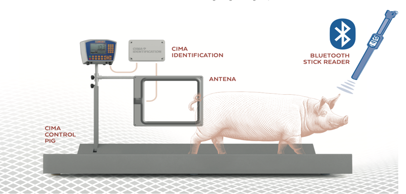 - CIMA IDENTIFICATION: Es un herramienta de Cima control pig que permite identificar a los cerdos mediante la lectura de los chips electrónicos RFID y está compuesto por: unidad de control + antena + programa de gestión.