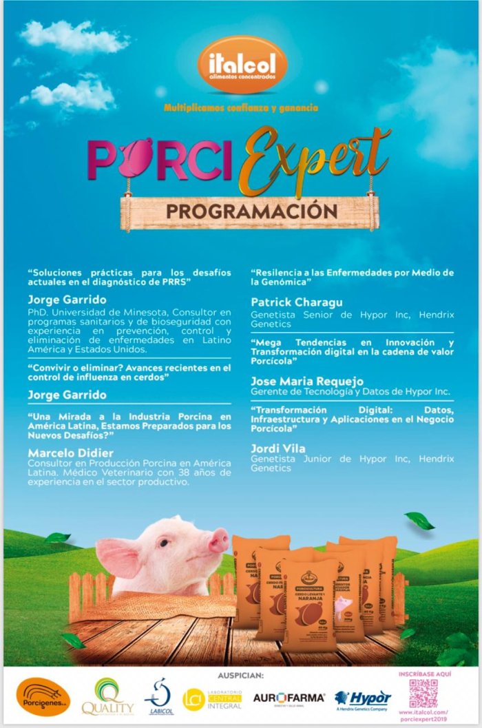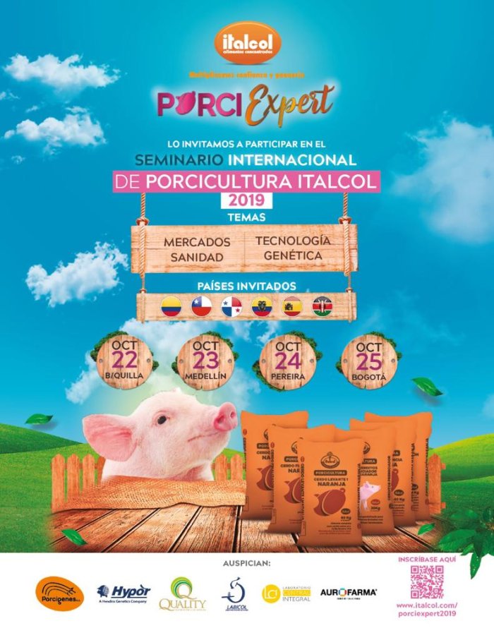 Entre los 22 y 25 de octubre se realizará en 4 ciudades colombianas el PorciExpert 2019, en donde 5 conferencistas internacionales hablarán de genética, tendencias, sanidad y mercado!.