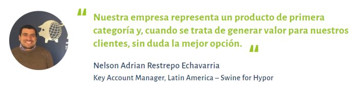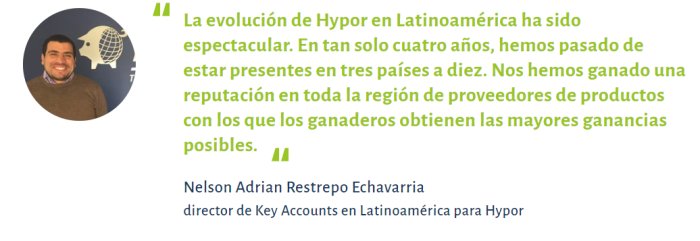 «La tendencia que observamos en Latinoamérica es hacia el aumento del consumo de carne de cerdo», dice Nelson Adrián Restrepo Echavarría, director de Key Accounts en Latinoamérica para Hypor. «Países como Perú han duplicado su consumo en cinco años, mientras que en Colombia se ha pasado de un consumo per cápita de 4 kg a 11 kg en muy poco tiempo».