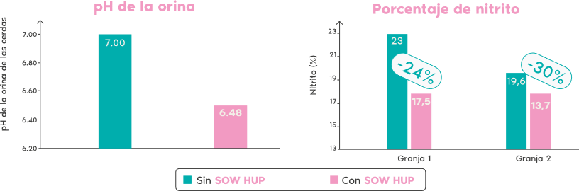 Al mismo tiempo, se reformula la alimentación de las cerdas, con la aplicación de un índice de fibra y la introducción de nuevos suplementos. Se realizan mediciones de orina y hemoglobina.