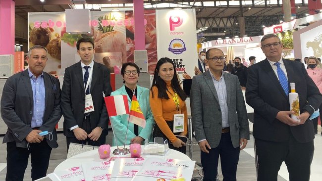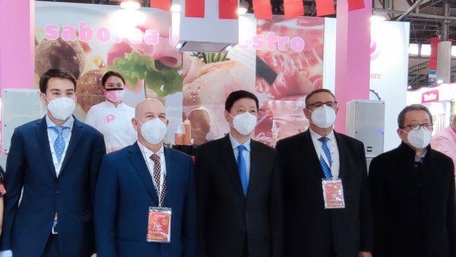 El embajador de China, Wu Haitao, visita el estand de INTERPORC en la feria Alimentaria.