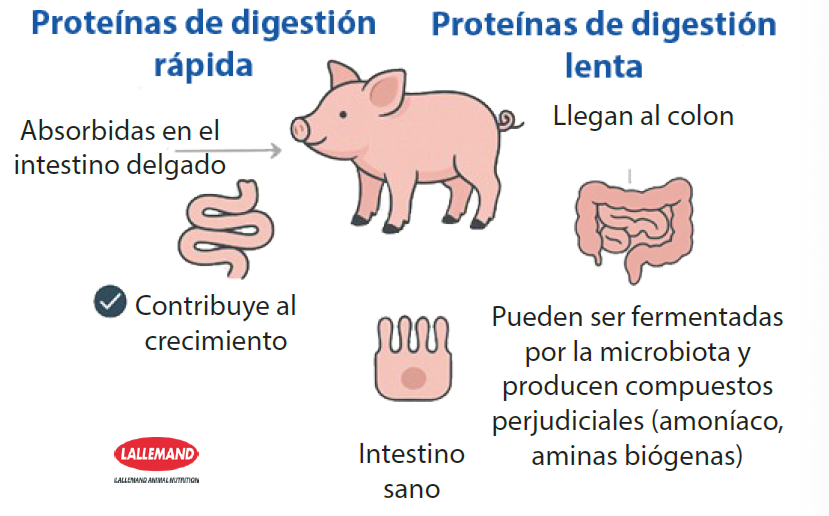que produce metabolitos nocivos, como las aminas biógenas y el amoníaco. Estas sustancias dañan la barrera intestinal y afectan a la salud de los lechones al aumentar su susceptibilidad a las enfermedades.