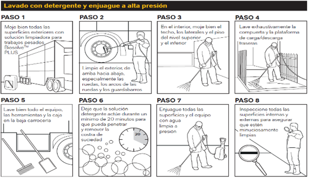 - Aplicación de detergente de uso pecuario BiosolveTM. Permitir tiempo de contacto de 20 minutos.