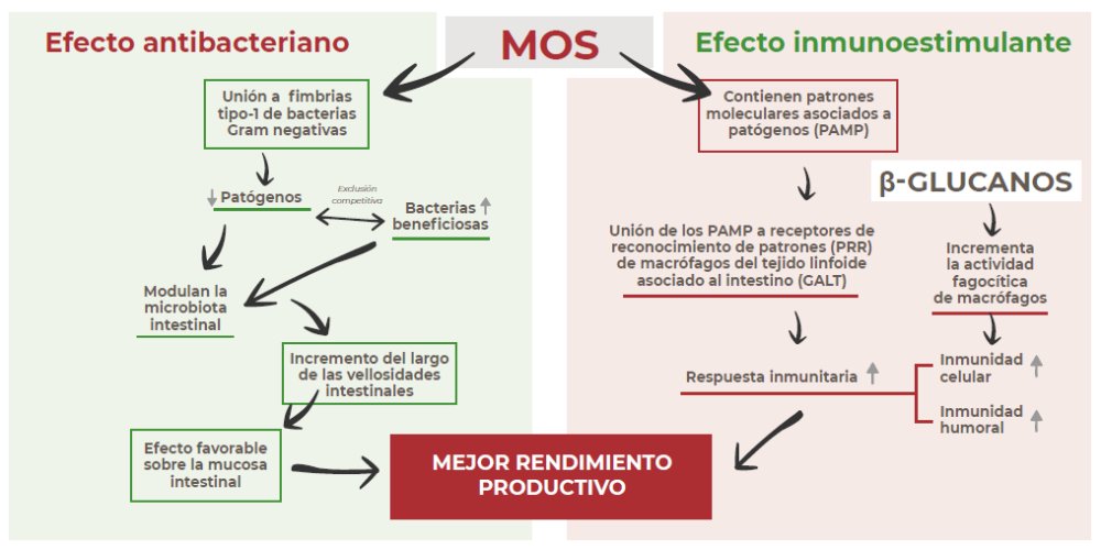Figura 1. Principales efectos de los MOS y β-glucanos.