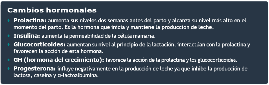 Todas estas hormonas han intervenido antes del parto para preparar la mama y, a partir de este momento y junto con otras hormonas, serán las responsables de mantener la producción de leche durante la lactación.