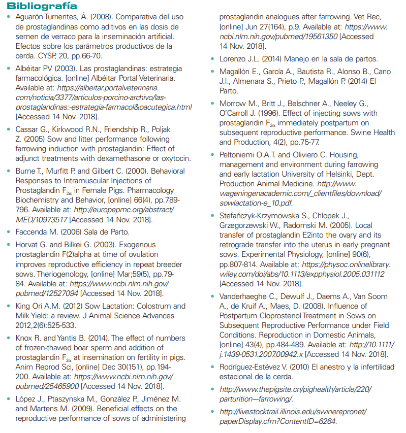 Las prostaglandinas están involucradas en el control de numerosos procesos de la gestación de las cerdas y participan en operaciones como (Stefańczyk-Krzy- mowska et al., 2005):