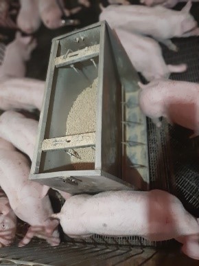 Lechones destetados: Esta es la etapa crucial del lechón, donde ya no depende de la leche materna, y debe acostumbrarse a beber agua del bebedero, y comer exclusivamente alimento seco. Los lechones son voraces, y tendrán un apetito desmedido. En esta etapa se recomienda alimentar POCO PERO FRECUENTE, ya que se estimula mejor, y no produciremos edema o diarrea por mala absorción, problemas frecuentes en esta primera etapa. El ambiente, el espacio vital, el espacio de comedero, así como la disponibilidad de agua serán vitales para que los consumos sean los apropiados. Nuevamente Lo que no se mide no se puede mejorar.