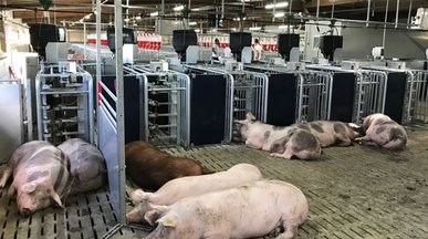 Alimentación en Lactancia: Una de las etapas más críticas de la hembra, ya que las nuevas hembras hiperprolíficas ahora tendrán menos grasa, pero más masa muscular, y comerán menos, siendo más eficientes. Debemos alimentar el día del parto solo un poco, para evitar el estrés de la hembra, y después del parto alimentar progresivamente hasta alcanzar el máximo a los 8 a 10 días de lactancia. Después del segundo día deberemos evitar tener comederos completamente limpios “espejeando” lo que nos indicará que las marranas se están quedando con hambre. Mantener un promedio de 6 kg en toda la lactancia será nuestra meta, destetando lechones de 6 kg a 21 días, al menos, y una pérdida de condición corporal de máximo 1 punto.