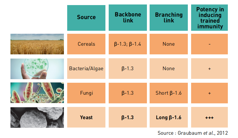 - Los β-glucanos procedentes de levaduras y con ramificaciones específicas β-1.3/1.6 son muy potentes induciendo la inmunidad entrenada.