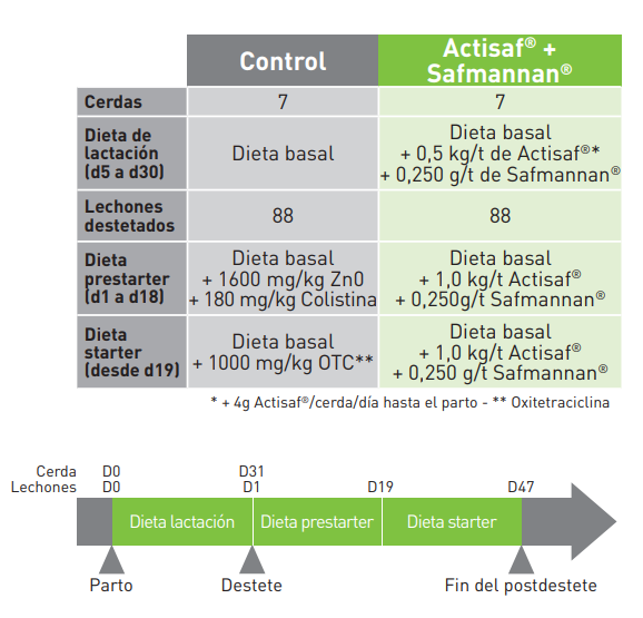 Evaluación del efecto de Actisaf® + Safmannan® en el rendimiento zootécnico de las cerdas lactantes y sus lechones durante la lactación y el postdestete, en comparación con el ZnO.