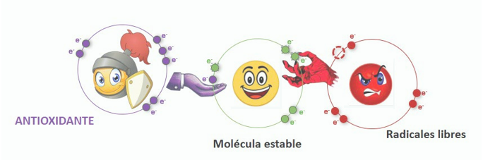 Figura 1. Mecanismo de acción de los antioxidantes contra los radicales libres