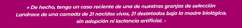 - prolificidad combinada con la calidad de los lechones, mejorando su uniformidad, su peso al nacimiento y su madurez.