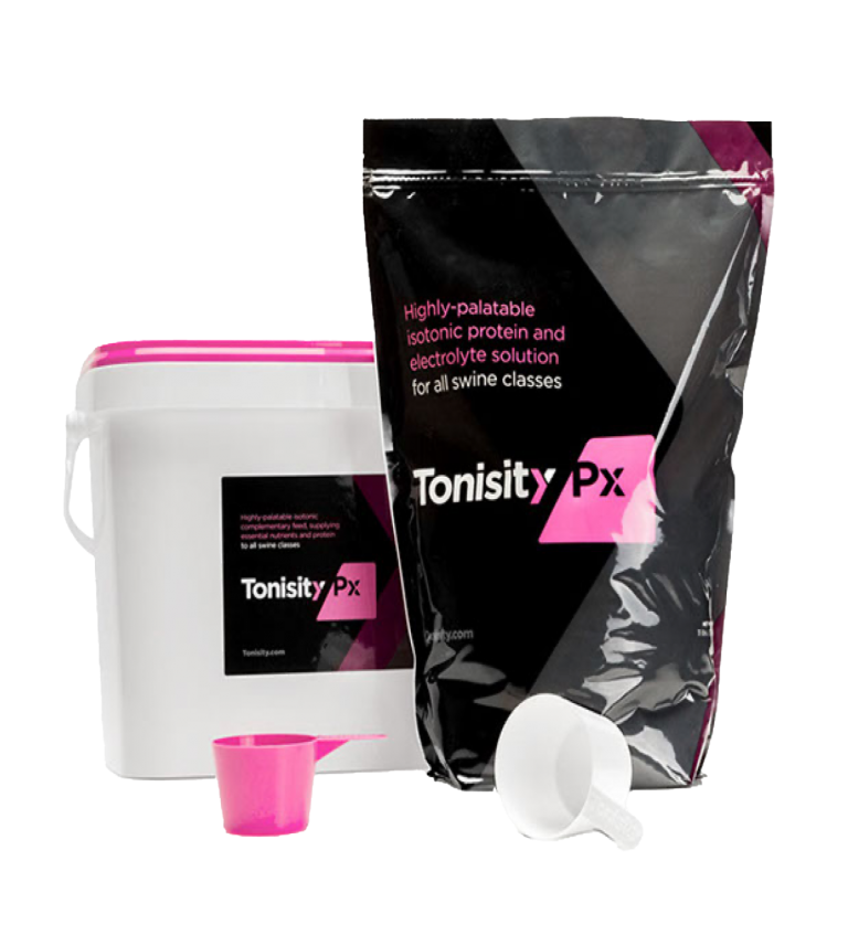 Tonisity Px is a highly-palatable isotonic protein drink for pigs. It is specifically formulated to support gut health and provide essential nutrients to piglets from day two of life. By nourishing the gut during its rapid development, Tonisity Px ensures better nutrient absorption, higher survival rates and optimal lifetime performance. It contains key amino acids, nutrients and electrolytes vital for pre-weaning piglets.