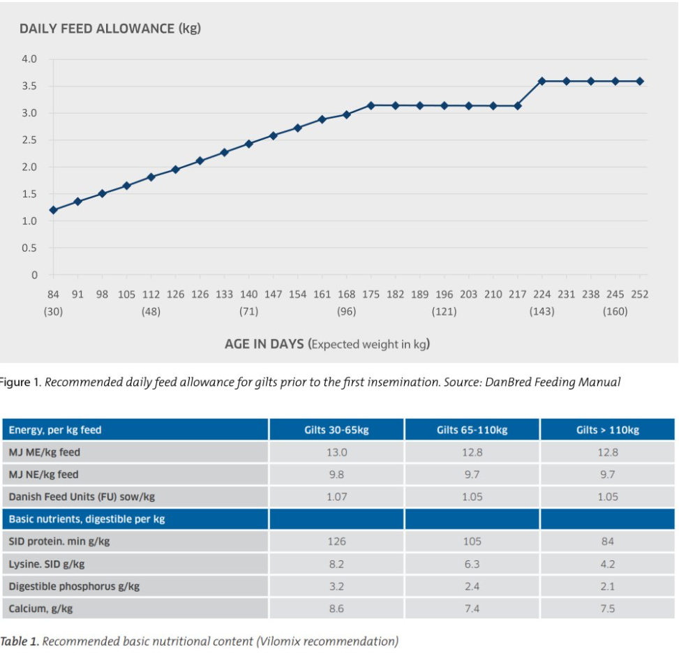 A partir de 110 kg, reducir la proteína digestible / aminoácidos SID ayuda a favorecer la deposición de grasa dorsal y evita un desarrollo muscular excesivo. Ensayos en reposición muestran que pesos demasiado altos en el primer servicio incrementan el riesgo de desvieje prematuro, en parte por mayor incidencia de osteocondrosis asociada a crecimientos excesivos en recría.