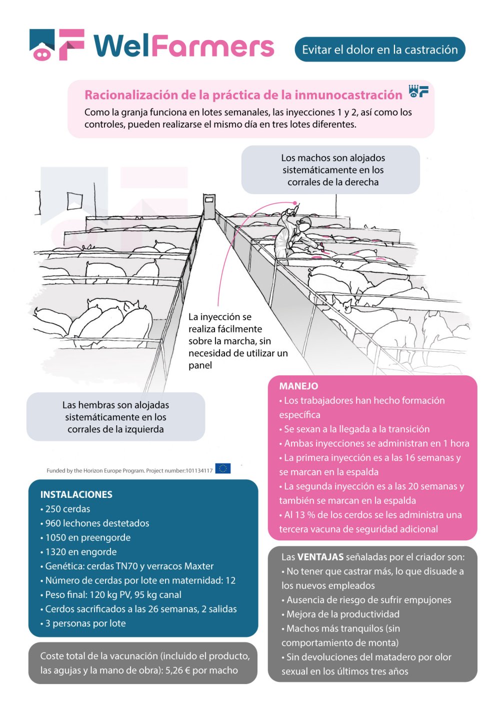Esta buena práctica, que separa a machos y hembras para facilitar la inmunocastración, fue una de las ganadoras de la categoría 'Evitar el dolor en la castración'. También puedes descargar la infografía como PDF.