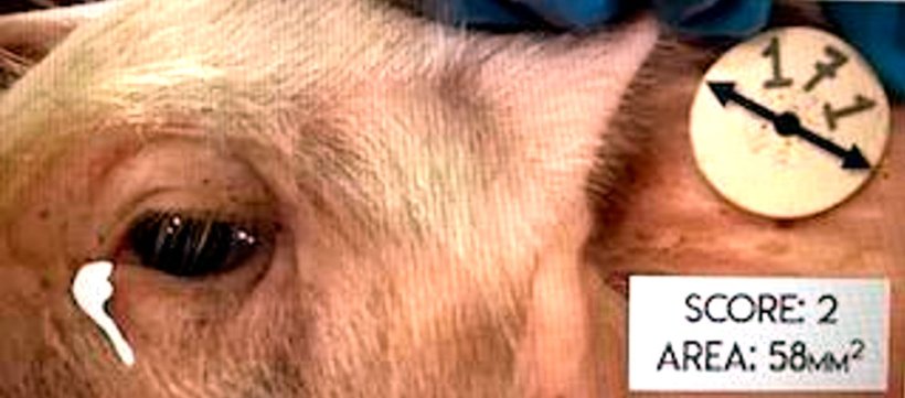 La presenza di cromodacriorrea (colorazione lacrimale), secrezione lacrimale dell'occhio dalla ghiandola di Harde al bordo dell'occhio, viene studiata come possibile causa di fattori di stress legati ai sistemi di stabulazione e al contatto con le persone, creando una classificazione in base alla percentuale di suinetti con detta clinica dalla settimana 1 alla 17 di vita. Valutano come contatto positivo la riduzione dei livelli di cortisolo, l'inattività, la morsicatura della coda e la crescita media giornaliera. Concludono che la presenza di lacrimazione può essere un indicatore dello stato di benessere e sono necessari ulteriori studi di ricerca per conoscere i precisi meccanismi di stress che inducono tale problema.