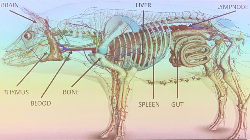 La mortalità prenatale è superiore al 15% in Australia, il che pone problemi economici e di benessere. Il microbioma è la comunità di microrganismi con nicchie multiple in diversi organi coinvolti nel metabolismo, nello sviluppo gastrointestinale, nello sviluppo immunitario e neuronale. FMT - Trapianto di microbioma fecale (Faecal microbiome transplantation): effettuare uno studio pilota per ripristinare la flora nei suinetti dopo un trattamento antibiotico con ceftiofur a 3 mg / kg. Dopo il trapianto, il microbioma è molto diverso il giorno 7 rispetto al giorno 18. Raccomandano la raccolta delle feci 10-14 giorni dopo il trattamento antibiotico. In un secondo esperimento, hanno impiantato un microbioma con le feci da suinetti sani a suinetti recentemente svezzati con l'obiettivo di normalizzare la loro flora il più presto possibile, continuando i loro studi su questo percorso.