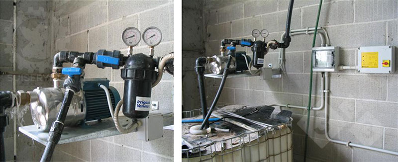La linea dell’acqua è generalmente alimentata da una pompa la cui pressione e portata viene regolata in funzione della lunghezza della linea, del numero e tipo di spruzzatori utilizzati. Il tutto è generalmente collegato ad un termostato che provvede ad accendere o spegnere la pompa in base alla temperatura impostata.