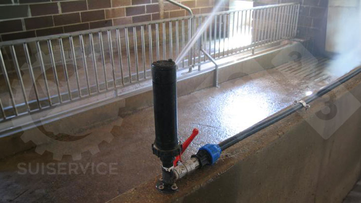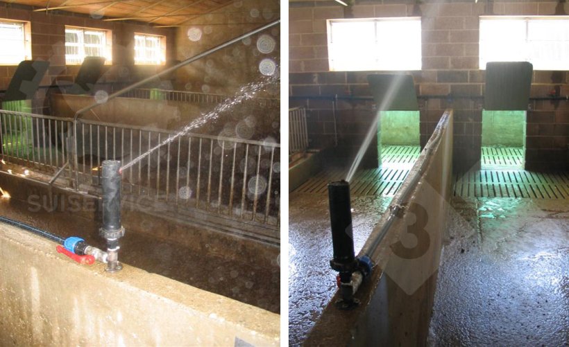 Dopo una-due ore dall’attivazione degli irrigatori, lo sporco è ben ammorbidito, ed il lavaggio del locale procede spedito con notevole risparmio d’acqua (e liquame da trasportare)!