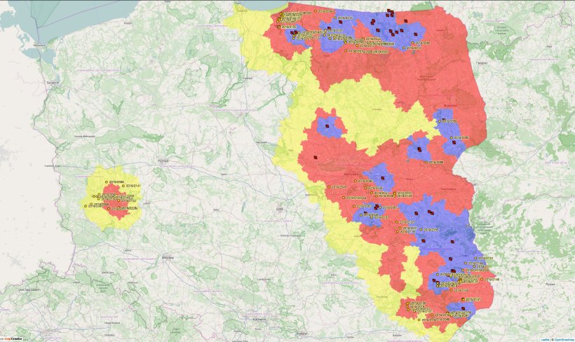 Vedere mappa dei focolai di PSA in Polonia.
