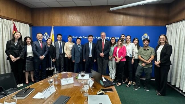 El ministro de Ganadería, Agricultura y Pesca y el subsecretario del MGAP junto a la directora de la Unidad de Asuntos Internacionales recibieron al subdirector de Cooperación Internacional del Ministerio de Agricultura y Asuntos Rurales de China (MARA), Sr. Peng Tingjun, y delegación, para dialogar en torno al intercambio comercial entre ambas naciones.
