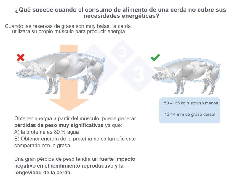 Si se proporciona a las primerizas dietas altas en proteína y energía, crecerán muy rápido y serán muy magras, con bajos niveles de grasa dorsal y, por lo tanto, menores reservas de energía. Su índice de conversión (IC) será muy bueno, ya que el desarrollo muscular requiere menos energía que la necesaria para depositar grasa.