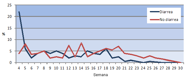 En las granjas con diarrea, ésta se concentra en la primera semana de estancia en la lechonera, mientras que en el resto, las causas son más variadas, y se reparten más a lo largo de todas las edades.