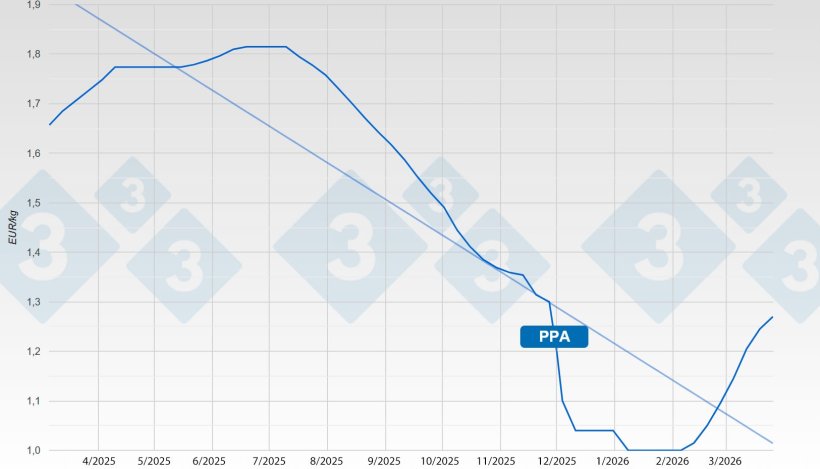 La PPA hundió la cotización española a 1,00 euro/kilo en vivo, muy por debajo del precio de costo. Se bajaron 30 céntimos en muy pocos días. Desde el jueves 12 de febrero, el precio del cerdo en España está experimentando un impulso alcista innegable: en siete semanas, la cotización española ha subido 27 céntimos por kilo en vivo. Se trata de subidas enérgicas y decididas que van aflojando su impulso.