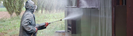 2. Recontaminación: Es la segunda causa más frecuente de los fallos de la limpieza y desinfección. Puede ocurrir en cualquier fase, desde la limpieza hasta la reintroducción de los cerdos. Un fallo común es la reintroducción de objetos o equipamientos que no han sido limpiados o mal limpiados. Este equipo puede ser recontaminado por salpicaduras durante su propia limpieza. La recontaminación por parte de los operarios también es frecuente, sobretodo a través de las botas o los monos sucios. El uso de un pediluvio fuera de cada nave puede ayudar, pero las botas deben estar limpias cuando se sumergen. Los animales también pueden introducir contaminación, es el caso de roedores, pájaros, gatos e, incluso cerdos que entran cuando no deberían. Finalmente la recontaminación también puede proceder de canalizaciones de agua que no se hayan limpiado ni desinfectado adecuadamente.