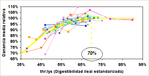 Por tanto, estos valores óptimos tienen diferentes interpretaciones y su valor depende del modelo con el cual hayan sido estimados. Así, en condiciones prácticas, la elección de una determinada relación thr:lys u otra dependerá del precio que uno esté dispuesto a pagar por aceptar una disminución en el crecimiento de los animales.