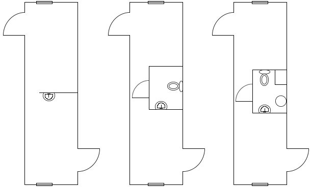 Puede ser una caseta prefabricada de las que se utilizan en las obras con la entrada por un lado y la salida por otro.