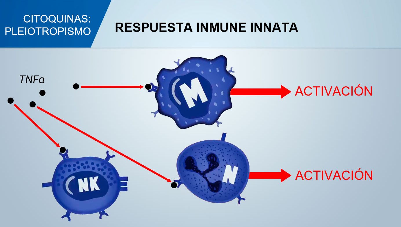 El papel de cada elemento en la respuesta inmune innata: interferón de tipo 1 y citocinas pro-inflamatorias, complemento, proteínas de fase aguda, proteínas antimicrobianas, fagocitos, células NK, linfocitos T γ / δ,...