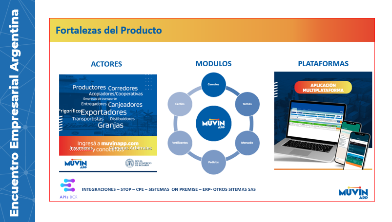 Esta aplicación se caracteriza por ser multi industria, abarcando desde empresas de insumos, cooperativas, de transporte, distribuidoras, hasta granjas y exportadoras, entre otros; Con el fin de integrar acciones que relacionan a distintos actores de la producción.