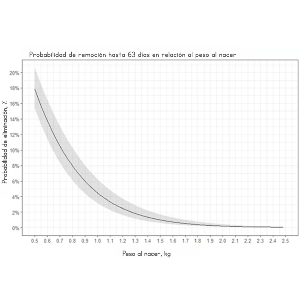 - Probabilidad de remoción hasta los 63 días en relación con el peso al nacer