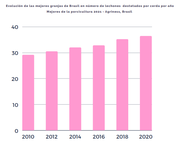 Gracias a la evolución de las empresas proveedoras de genética, reportes indican que en los últimos años el top 10 de las mejores granjas de Latinoamérica destetan 7 lechones más por cerda por año. Por otro lado, desde el punto de vista del potencial productivo durante la lactancia de la cerda, podemos observar que en los últimos 5 años las granjas de alta productividad , lograron destetar 50 kg más de camada por cerda por año.