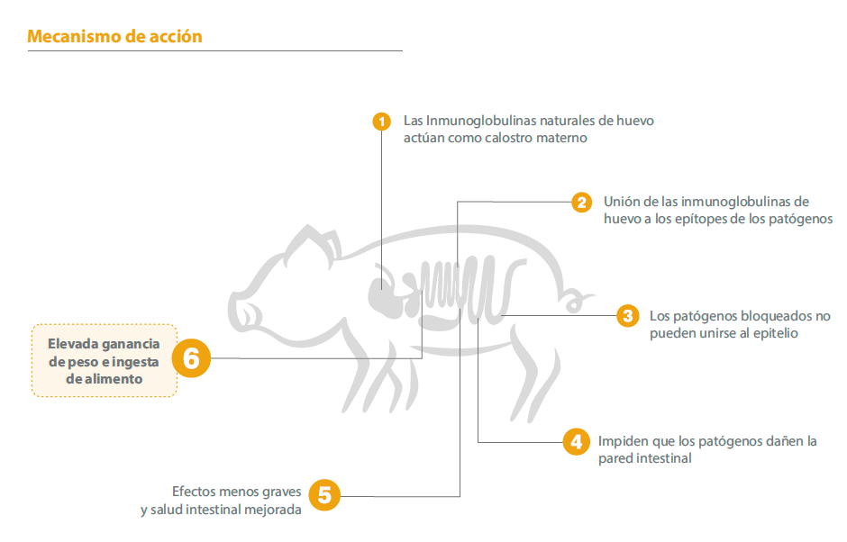 En este contexto las inmunoglobulinas de huevo pueden ser una alternativa funcional, que mejora la salud intestinal, la ganancia de peso y disminuye la mortalidad, al neutralizar sustancias extrañas en el tracto gastrointestinal.