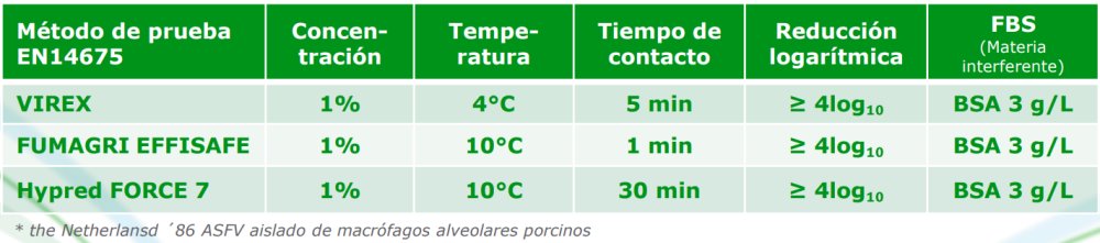 HYPRED FORCE 7, VIREX y EFFISAFE han sido probados recientemente contra el virus de la PPA* en la Universidad de Wageningen siguiendo la norma EN14675.