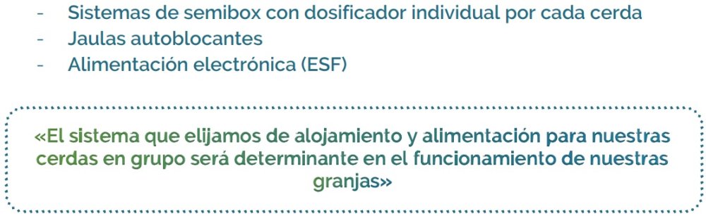 Permite trabajar con tamaños de grupos muy variables en función del sistema que elijamos para nuestra granja y necesitamos tener cerdas entrenadas para tener éxito, aunque también veremos más adelante que unos tipos de ESF requieren más entrenamiento que otros.