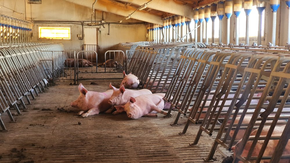 • Las cerdas están tranquilas dentro de las jaulas.