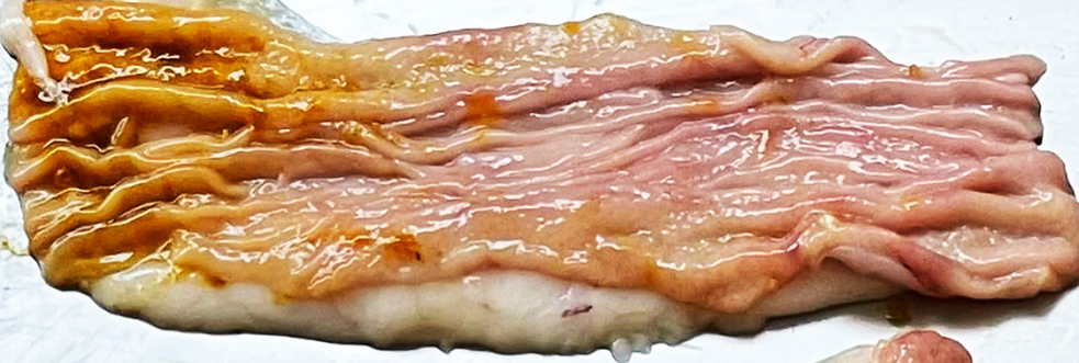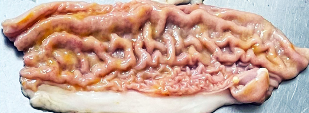 - 36 % de los intestinos con lesiones graves (score 2 y 3), evidenciando engrosamiento de la pared intestinal.