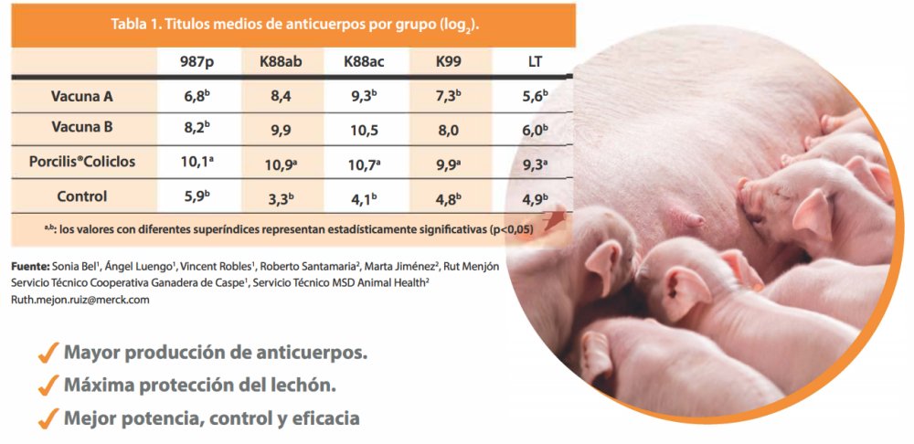 Los grupos fueron los siguientes: Vacuna A. Vacuna B. Porcilis ColiClos. Control. En este estudio Porcilis®ColiClos mostró ser una vacuna segura, que induce un elevado y homogéneo título de anticuerpos contra cada uno de los antígenos de E. coli en prueba y que además consigue unos niveles de anticuerpos superiores a los del grupo control y el resto de las vacunas.